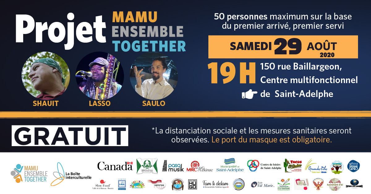 En compagnie de Shauit, Lasso et Saulo, nous présenterons le projet Mamu Ensemble Together suivi d’une période de questions et réponses afin de promouvoir la diversité et la compréhension interculturelle.